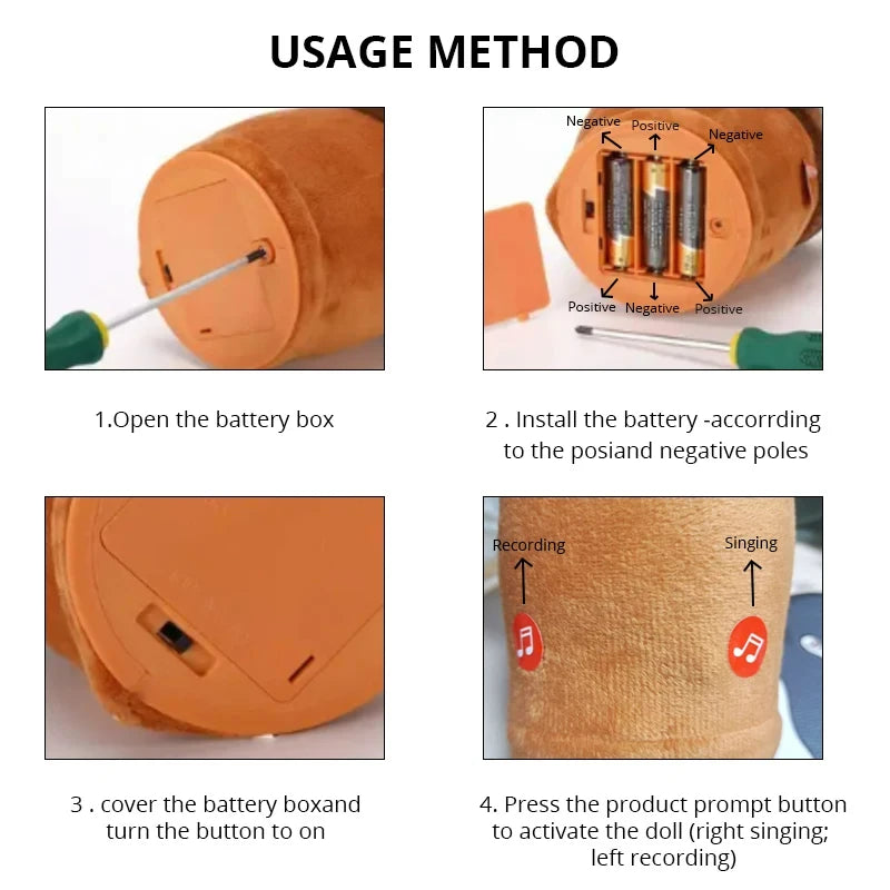 The Dancing Cactus toy 🌵 repeats your words 🗣️, creating an engaging and interactive experience 🎉. Made from soft plush fabric 🧸 and filled with high-quality PP cotton, it offers a comfortable, durable, and skin-friendly feel 🤗. This lively cactus not only sings 🎤 and dances 💃 but also lights up 💡, bringing a playful atmosphere to any room 🏠. Powered by 3 AA alkaline batteries (not included) 🔋, it features a charming design that makes it a delightful decorative piece 🎨. Easy to maintain—just wipe with a damp cloth 🧼. Perfect for adding fun and personality to your space! ✨