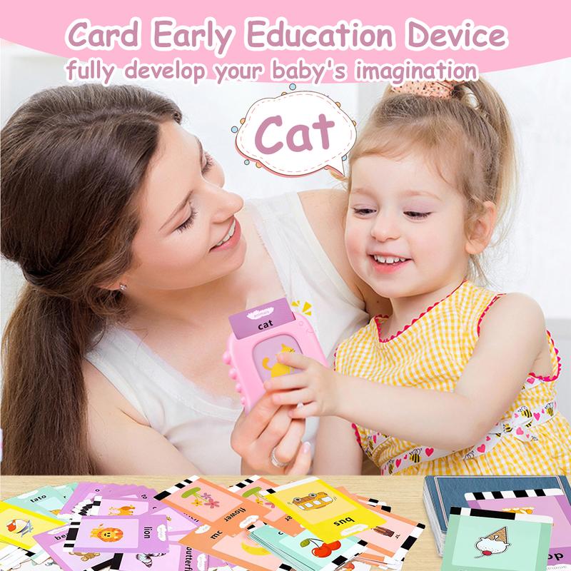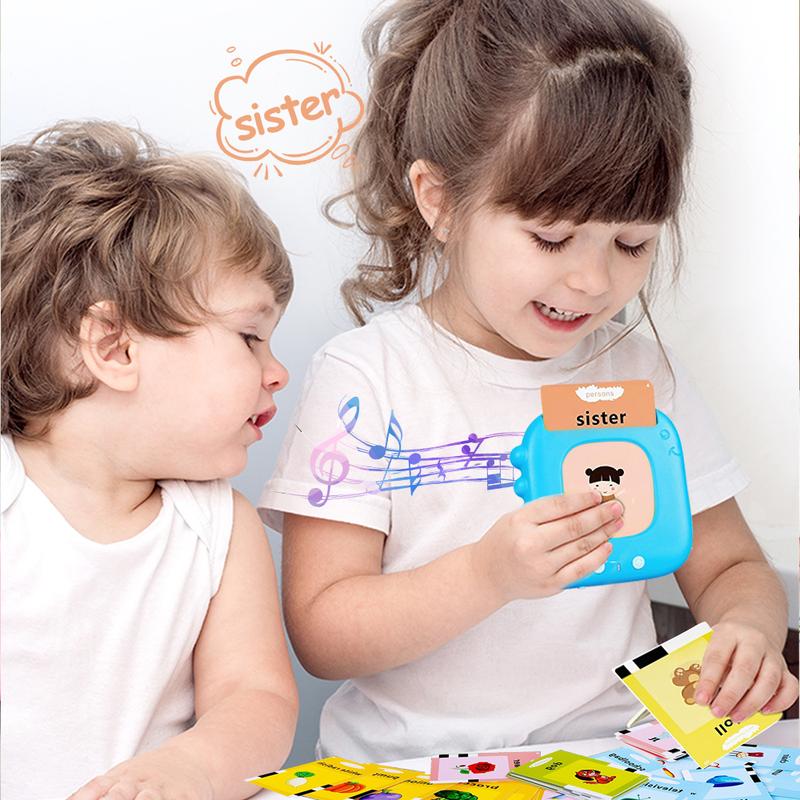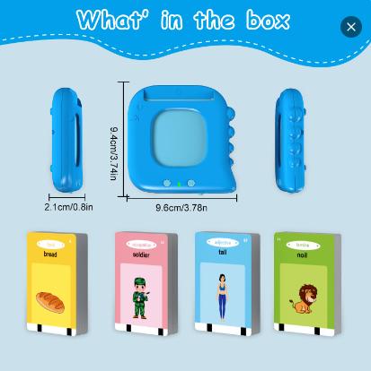 - Talking Flash Cards Pack Include:Machine size is 3.9in x 0.8in x 3.9in.112Pcs Children’s Double Sided Cards, a card reader,a USB charging cable.